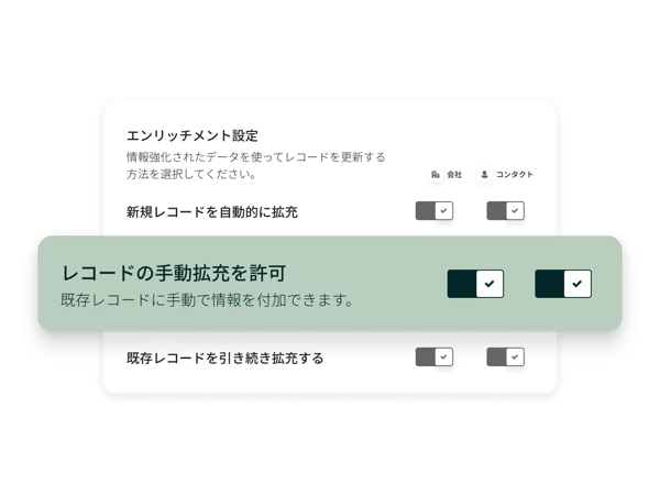 エンリッチメント時には、マッピングされたフィールドの値を上書き・維持・空白のままにするなど柔軟に設定できるため、データを完全にコントロールできます。